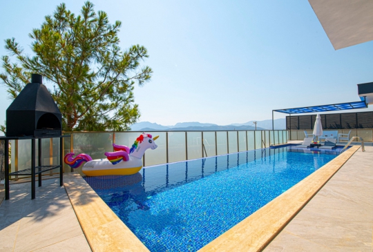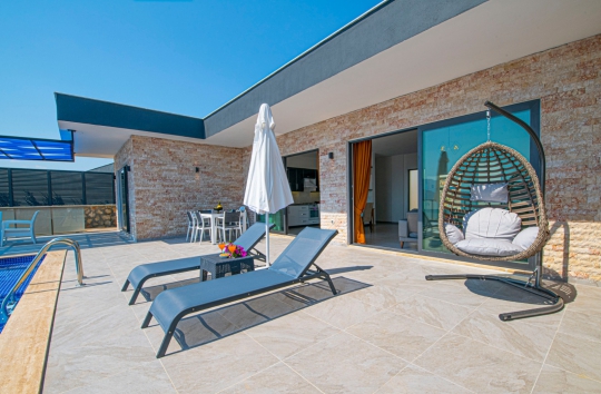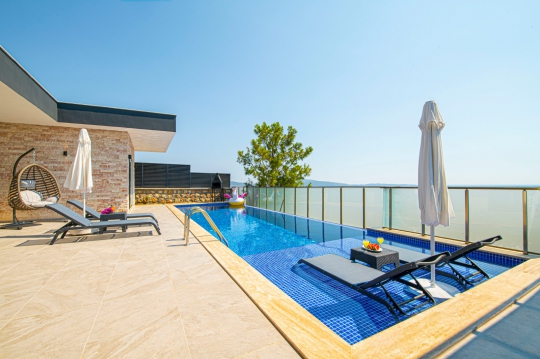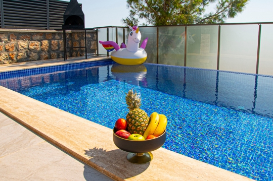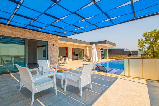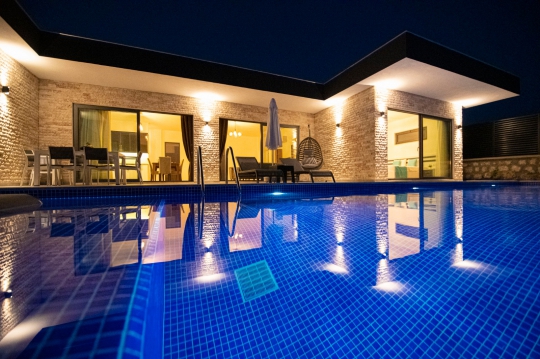 Villa Azelya mükemmel bir arsa üzerine kurulmuş tek katlı tatil villasıdır.Her odasından mükemmel doğa manzarasına sahip olan villamız son derece lüks,özel olarak dekore ve dizayn edilmiştir.Villamızın havuzu korunaklıdır,muhafakazar aileler ve balayı çiftleri için özel bir şeçenek olup unutulmaz bir tatil için siz değerli misafirleri beklemektedir.Villamızda ayrıca bir sauna odasıda bulunmaktadır.Villamızın havuz terası doğa ve havuz manzaralıdır.