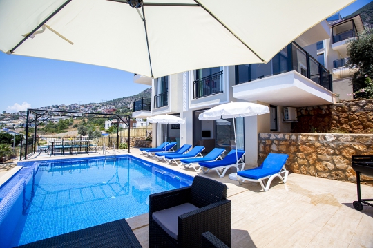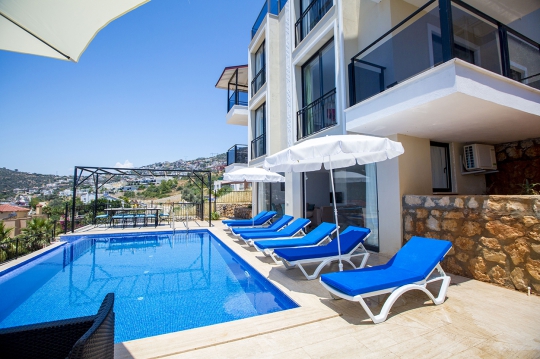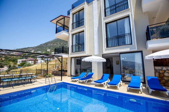Kaş Kalkan da bulunan Villamız konumu itibariyle her odasından kesintisiz muhteşem deniz manzarasına sahiptir.Villamız 3 normel kat ve teras kattan oluşan villamız giriş katında 2 oda , üst katta 2 oda ve teras katta 1 yatak odası bulunmaktadır.