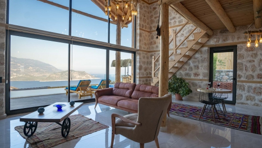 Kalkan kaş deniz manzaralı 2 kişilik lüks villa