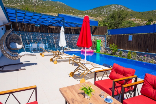 Kiralık Tatil villamız villa Günay 2021 sezonu ile birlikte siz değerli misafirlerine kapılarını açmaktadır.Villamız Kalkan Aklar mevkinde konumlanmış olup 2 yatak odalı villadır.Muhafazakar özel havuzlu olan villamız sizlere gözlerden uzak izole tatilin kapılarını açmaktadır.Villamızda hamam,sauna ve suit odamızda jakuzide bulunmaktadır.Balayı çiflerimiz için de ideal bir seçenek olan villamız sizleri doğa içinde kapılarını açmaktadır.